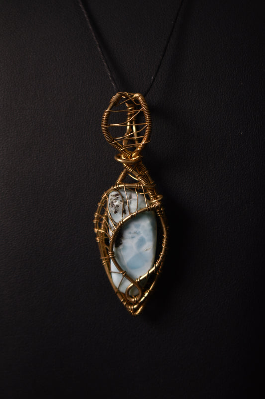Larimar- Tidekeeper Brass Pendant