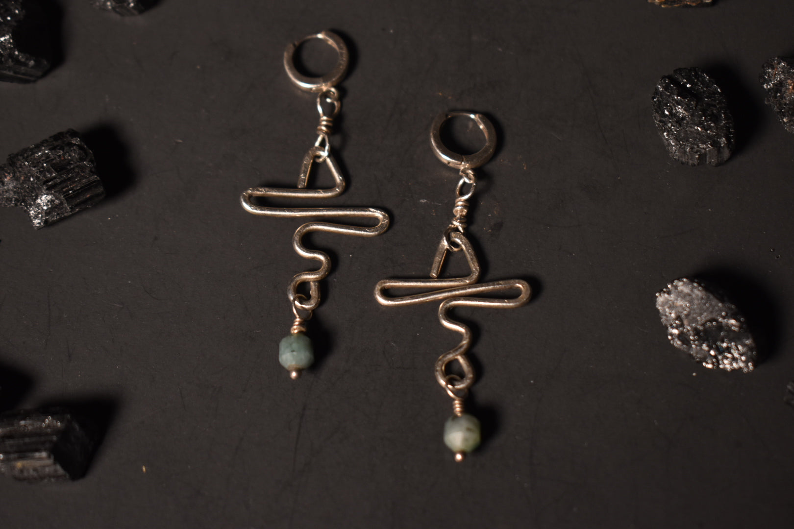 Artistic Ankh — Emerald Sterling Silver Earrings