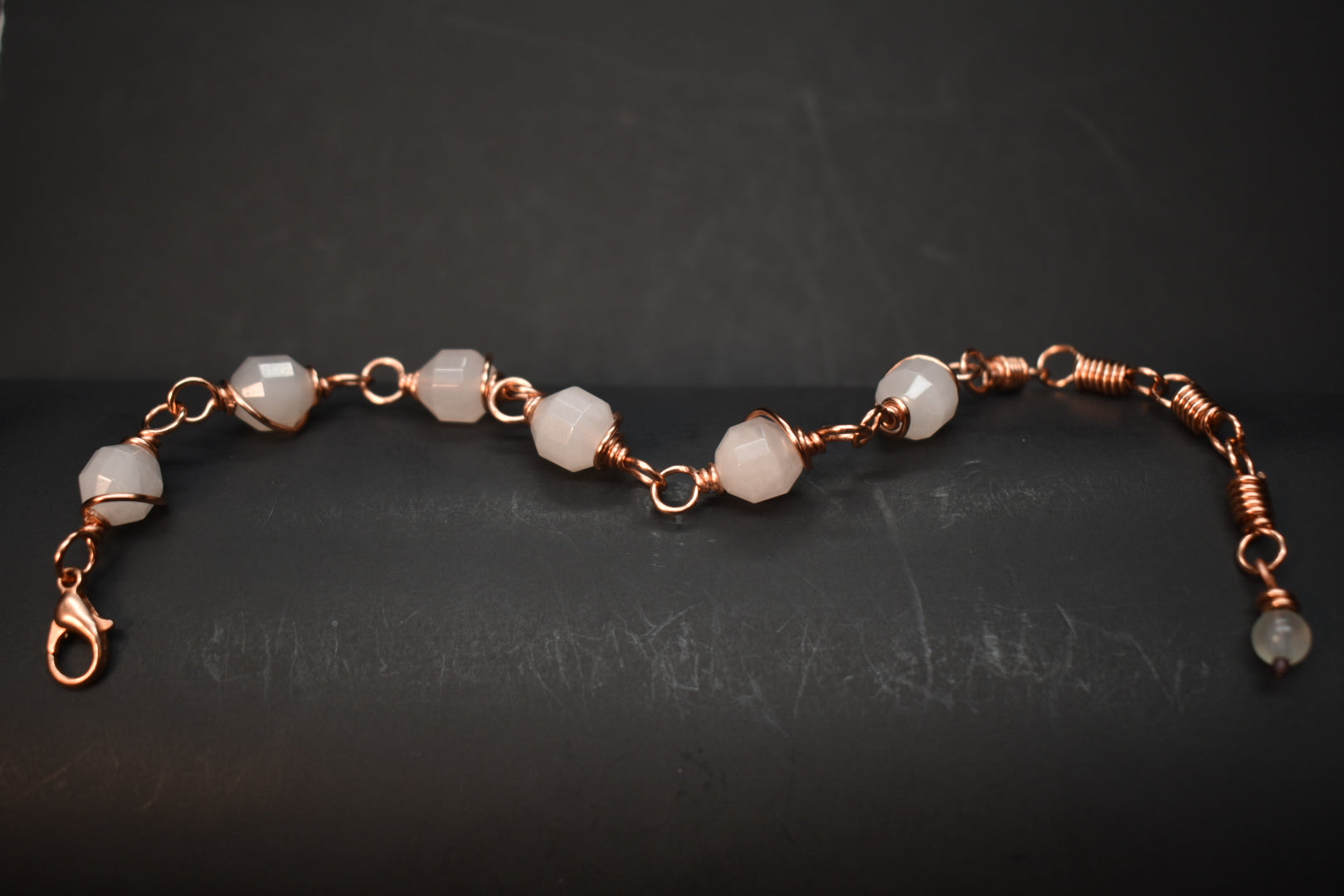 The Copper Orbit Bracelet is a dance of spheres and spirals, linked together in a flowing circuit of radiant metal. Each bead rests in its own orbit, held by hand-forged copper wire, creating a rhythm of balance and motion around the wrist.