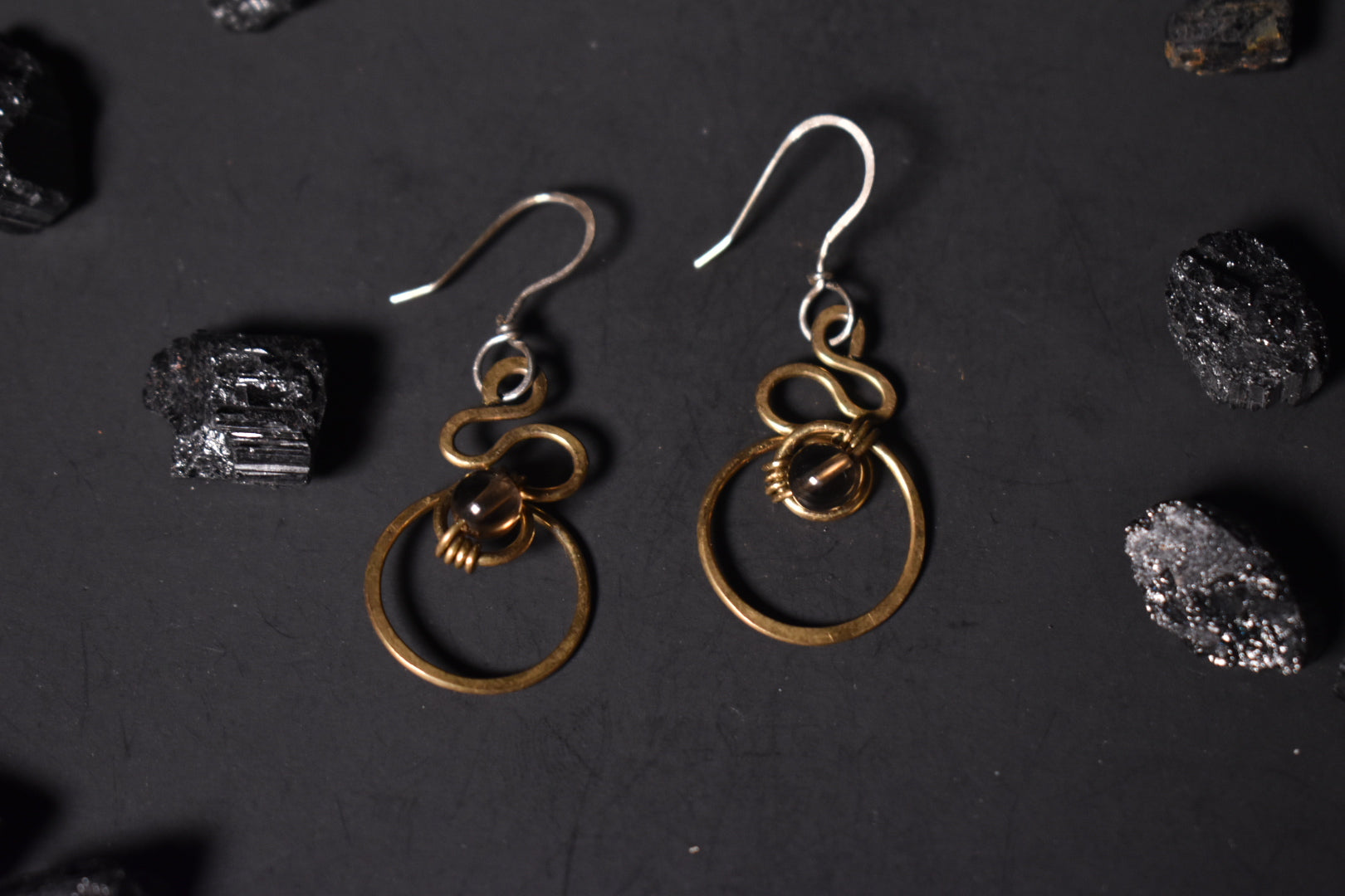 Smokey Quartz- Serpent’s Solar Gate: Twin Orbi Earrings