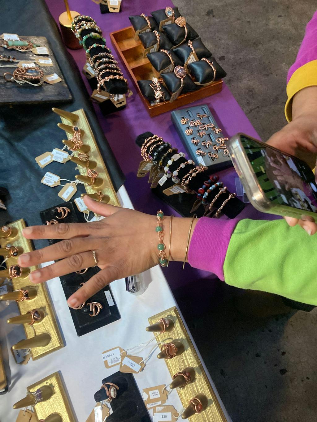 The Kosmik Orbit Bracelet is a wearable reflection of celestial movement—each curve and wire twist echoing the eternal dance of planets and stars. Handcrafted with precision, these bracelets unite copper, brass, and silver with natural stones, forming orbits that cradle cosmic energy in flowing symmetry. Every piece is unique, channeling the balance of Kemet’s sacred geometry with the infinite rhythms of the cosmos. Designed to embody both beauty and meaning, the Cosmic Orbit Bracelet adorns the wrist as a reminder that we, too, are part of the great orbit of creation.