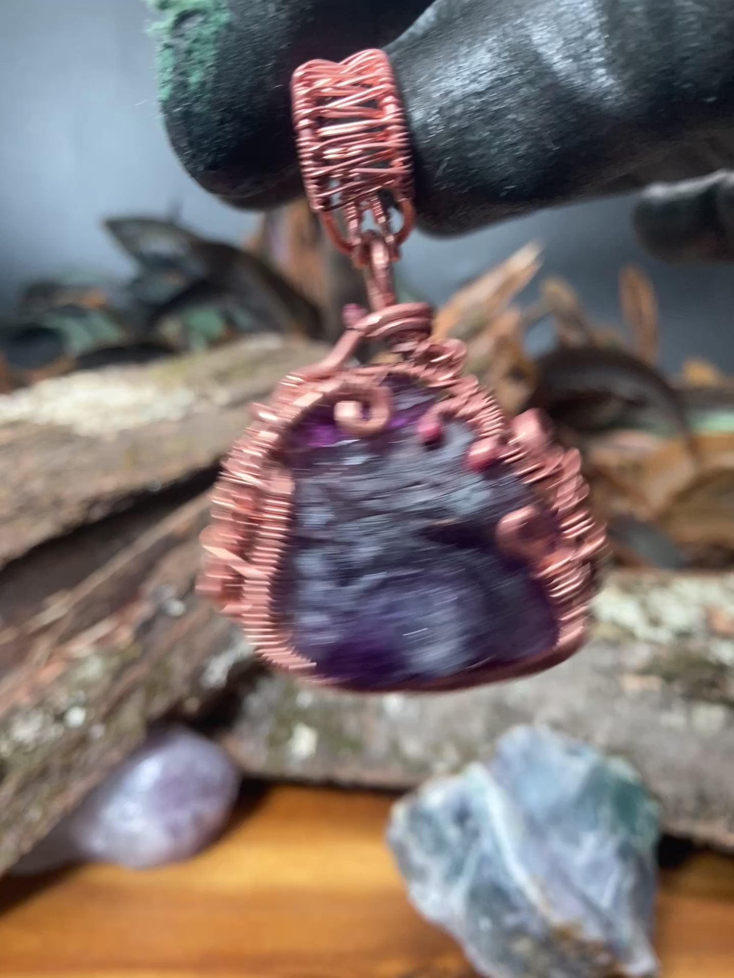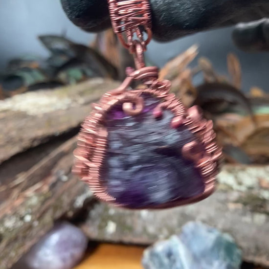 Forged in reverence to the infinite colors of consciousness, The Akashic Heart is a beacon of multidimensional memory and radiant truth. At the center lies a raw rainbow fluorite crystal, shimmering with layers of violet, blue, and green — each hue a key to different chambers of the soul’s wisdom. The piece is framed in coiled copper like the sacred boundary of a stargate, inviting the wearer into inner alignment, energetic clarity, and expanded perception.