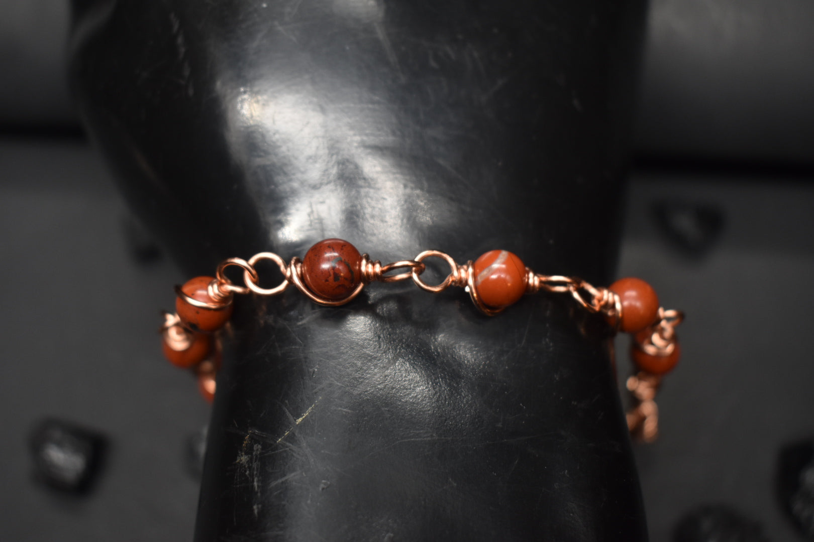 The Copper Orbit Bracelet is a dance of spheres and spirals, linked together in a flowing circuit of radiant metal. Each bead rests in its own orbit, held by hand-forged copper wire, creating a rhythm of balance and motion around the wrist.