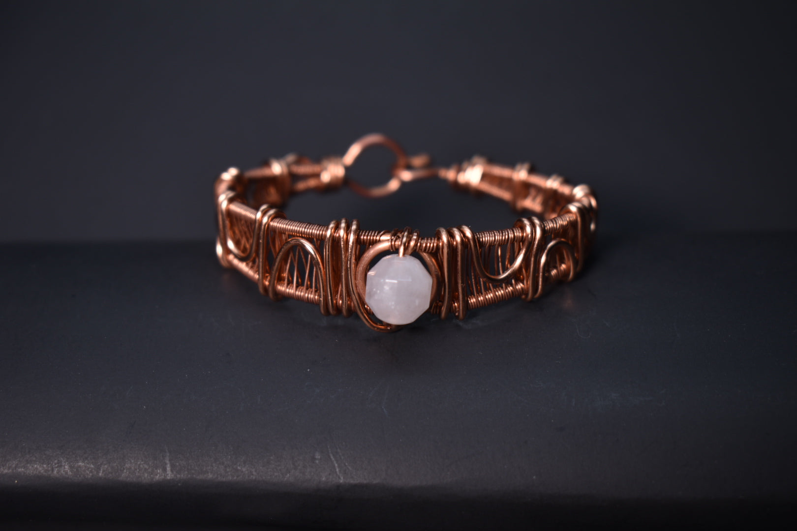 Rose Quartz- Eye of Heru: Copper Bracelet